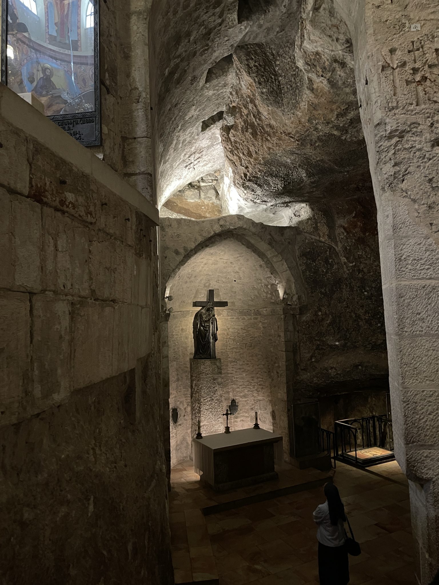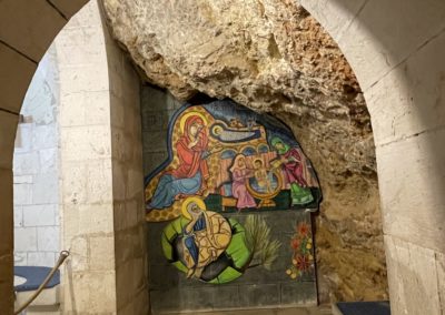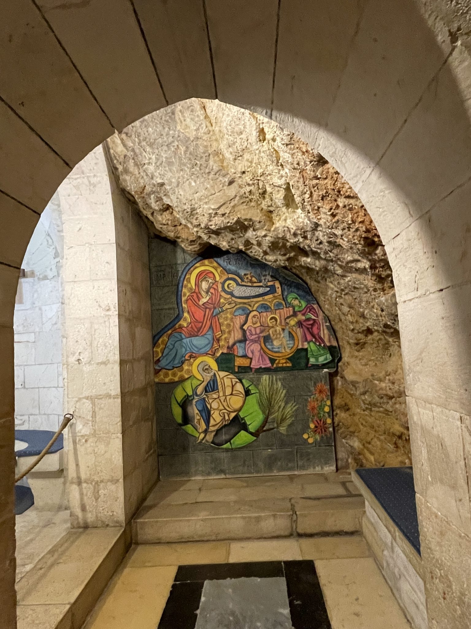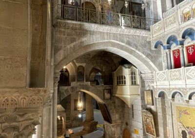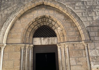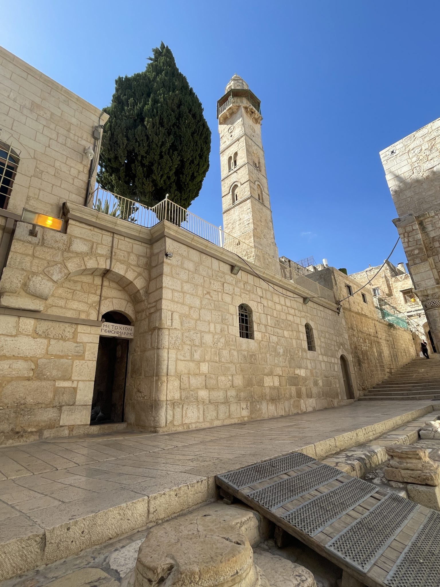 Nous nous sommes ensuite rendus à l’église Sainte Anne, située à Jérusalem Est dans la Vieille Ville. Elle est administrée par les Pères blancs et elle se trouve juste à côté du site archéologique de la piscine de Bethesda du Nouveau Testament. Selon la tradition chrétienne orientale, la crypte est située sur le lieu de la maison d’Anne et Joachim, les parents de la Vierge Marie à Jérusalem, dans laquelle elle serait née. L’église actuelle, de style roman, a été construite par les croisés en 1140 et a tout de suite été dédiée à sainte Anne. Après la conquête de Jérusalem par Saladin, l’église est transformée en 1192 en école de droit coranique, puis tombe en ruines au cours des siècles. En 1856, après la guerre de Crimée, la France reçut l’église du Sultan Abdülmecid Ier en remerciement de son aide à la Turquie. Sainte-Anne fut donc restaurée et l’État français la confia en 1877 à Monseigneur Lavigerie et à sa Société des missionnaires d’Afrique.