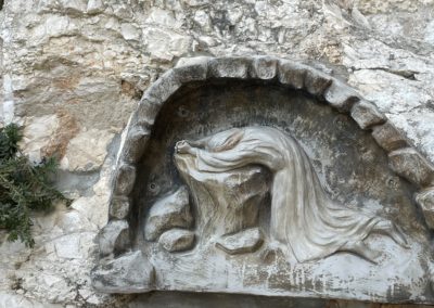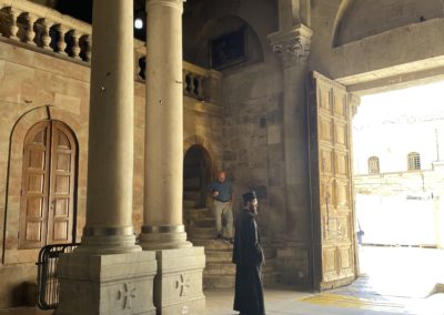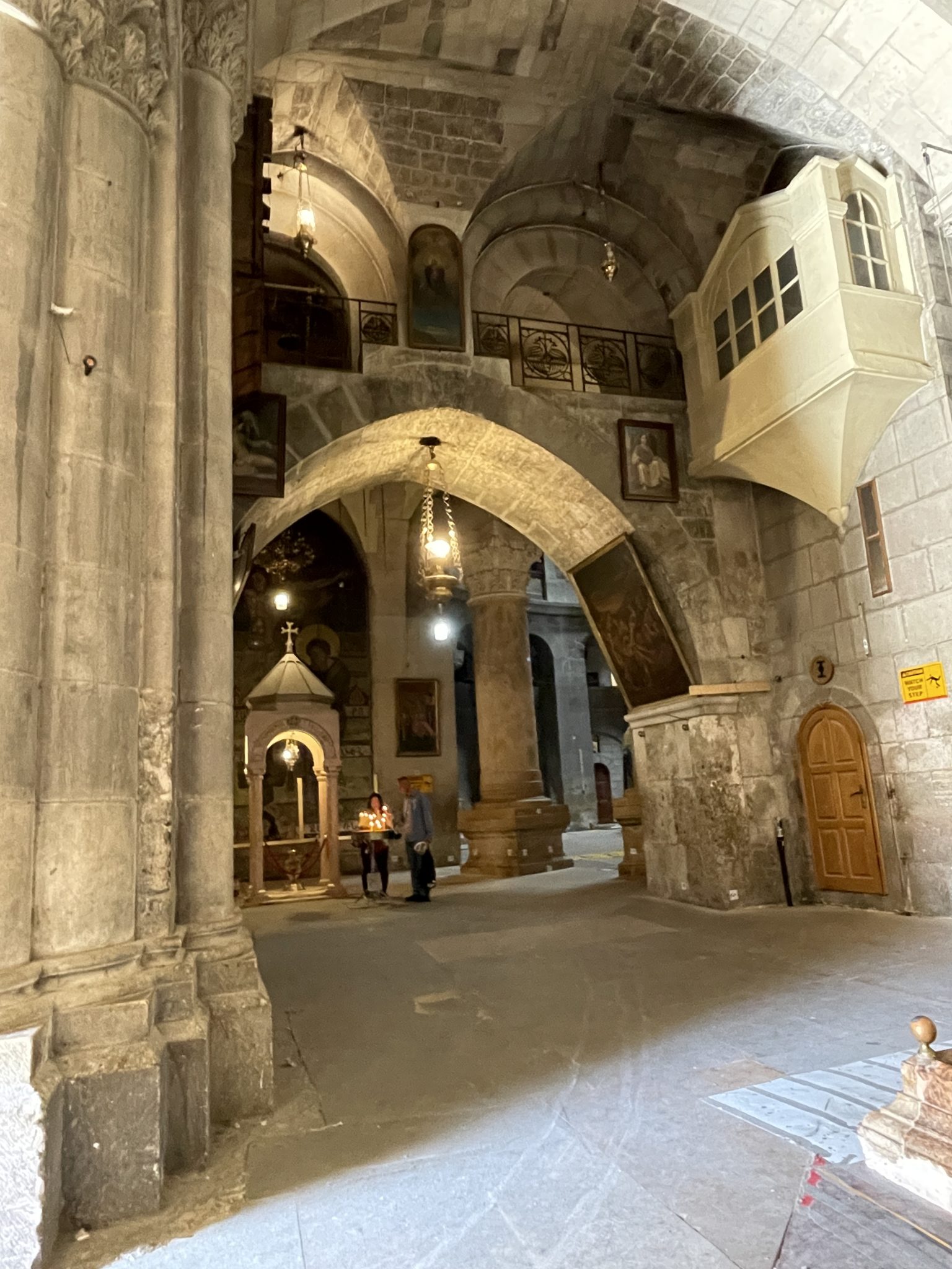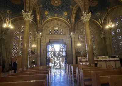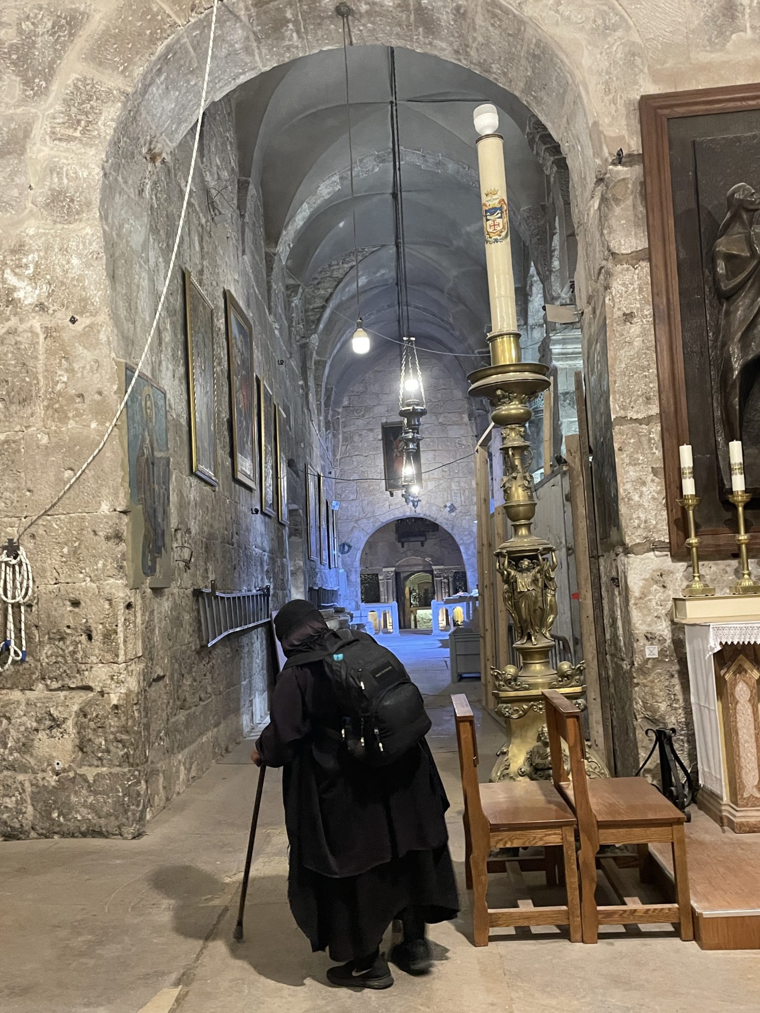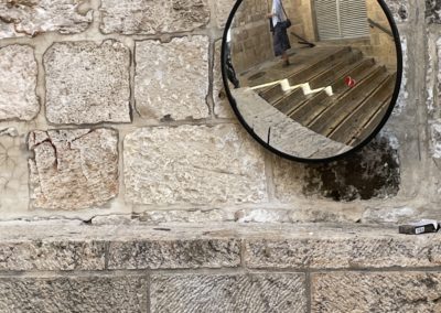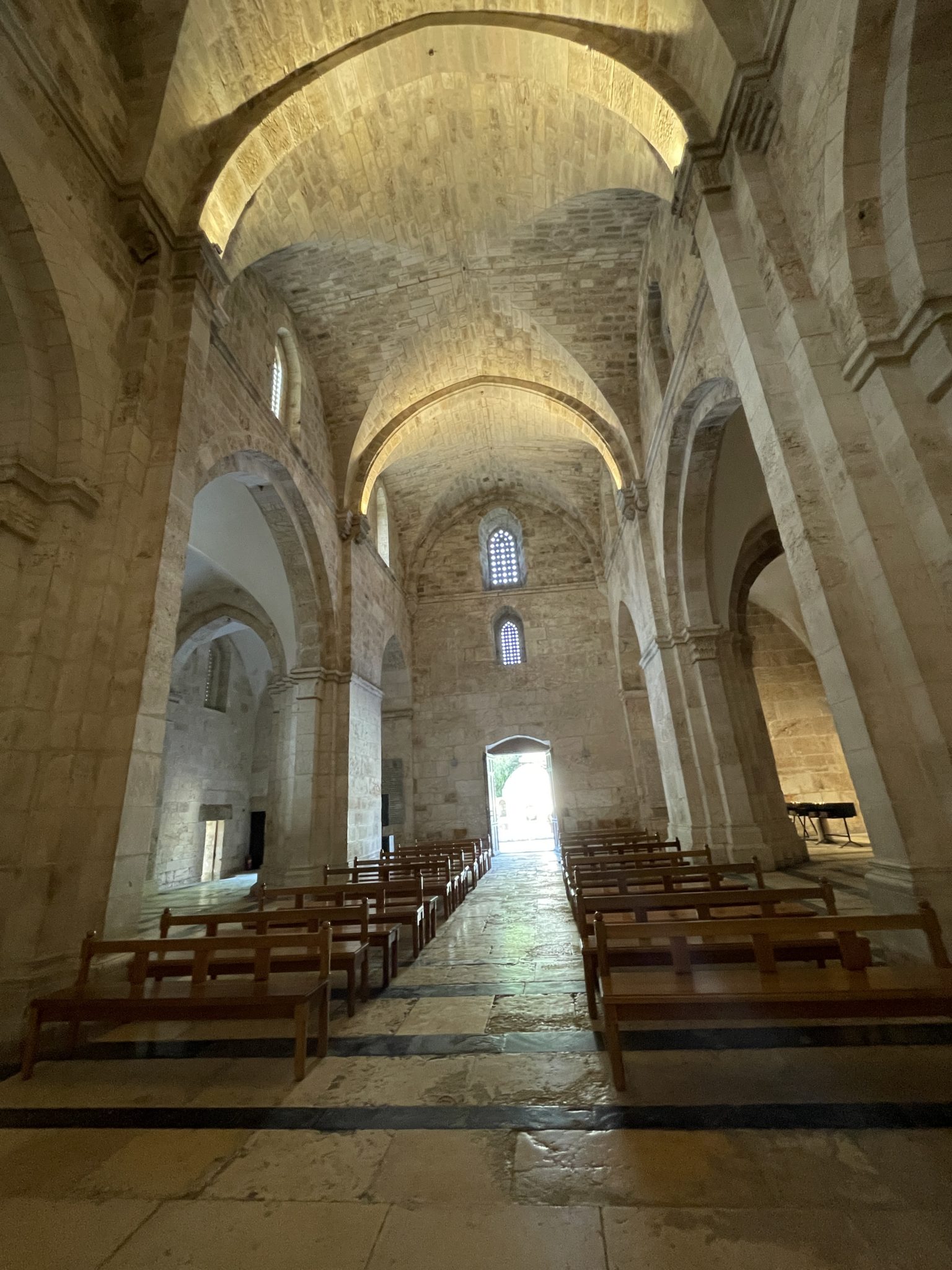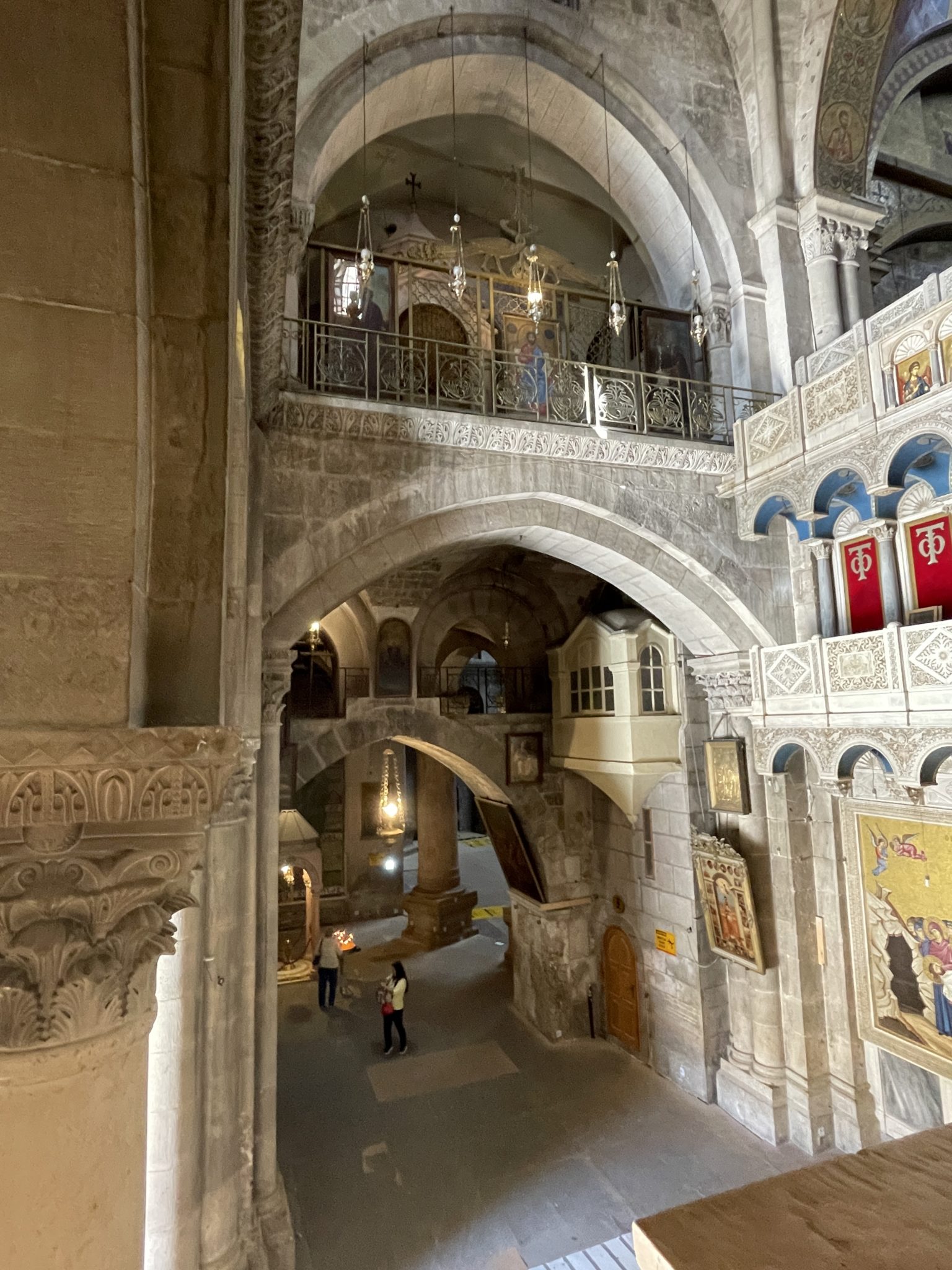 Nous nous sommes ensuite rendus à l’église Sainte Anne, située à Jérusalem Est dans la Vieille Ville. Elle est administrée par les Pères blancs et elle se trouve juste à côté du site archéologique de la piscine de Bethesda du Nouveau Testament. Selon la tradition chrétienne orientale, la crypte est située sur le lieu de la maison d’Anne et Joachim, les parents de la Vierge Marie à Jérusalem, dans laquelle elle serait née. L’église actuelle, de style roman, a été construite par les croisés en 1140 et a tout de suite été dédiée à sainte Anne. Après la conquête de Jérusalem par Saladin, l’église est transformée en 1192 en école de droit coranique, puis tombe en ruines au cours des siècles. En 1856, après la guerre de Crimée, la France reçut l’église du Sultan Abdülmecid Ier en remerciement de son aide à la Turquie. Sainte-Anne fut donc restaurée et l’État français la confia en 1877 à Monseigneur Lavigerie et à sa Société des missionnaires d’Afrique.