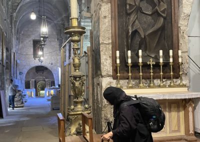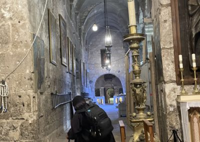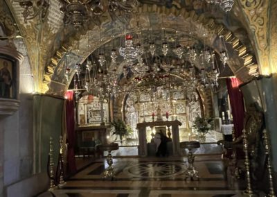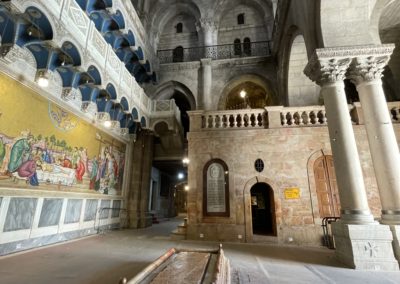 Le grand mausolée de marbre qui couronne la nef circulaire de la basilique est la principale attraction du Saint-Sépulcre. Les files d’attente pour entrer dans cette petite chapelle peuvent être infinies, c’est pourquoi nous vous recommandons d’arriver tôt le matin. Le lit mortuaire vénéré ne peut accueillir que quatre ou cinq personnes.