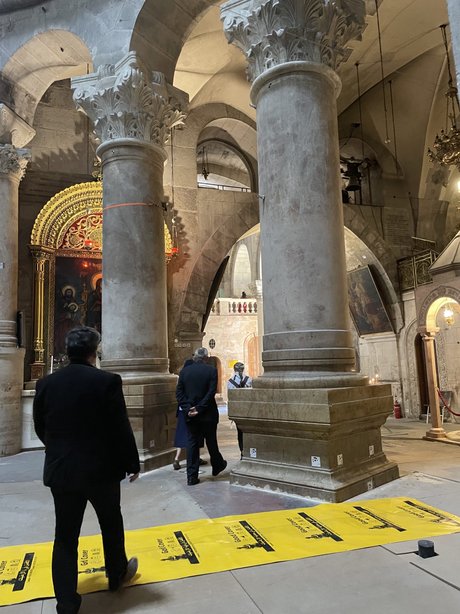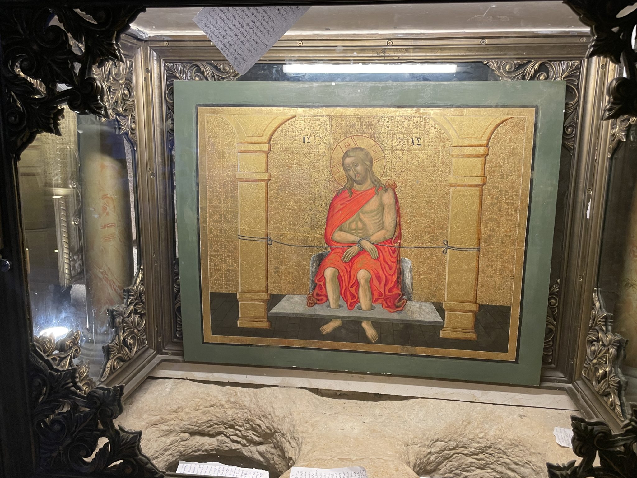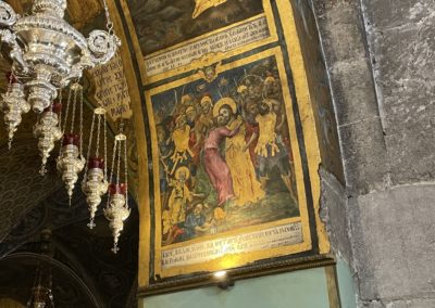 à l’entrée principale de la basilique se trouve la célèbre pierre où, selon les évangiles, Jésus a été oint avant d’être enterré. Chaque jour, des centaines de fidèles du monde entier se pressent autour de la pierre en attendant leur tour pour s’agenouiller et embrasser cette relique.
