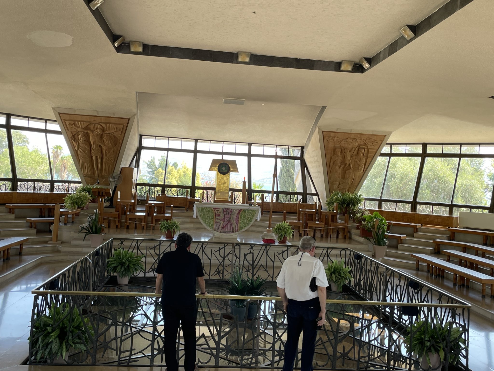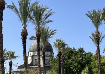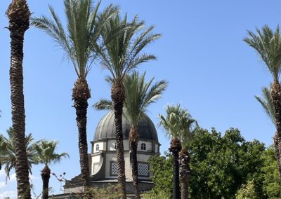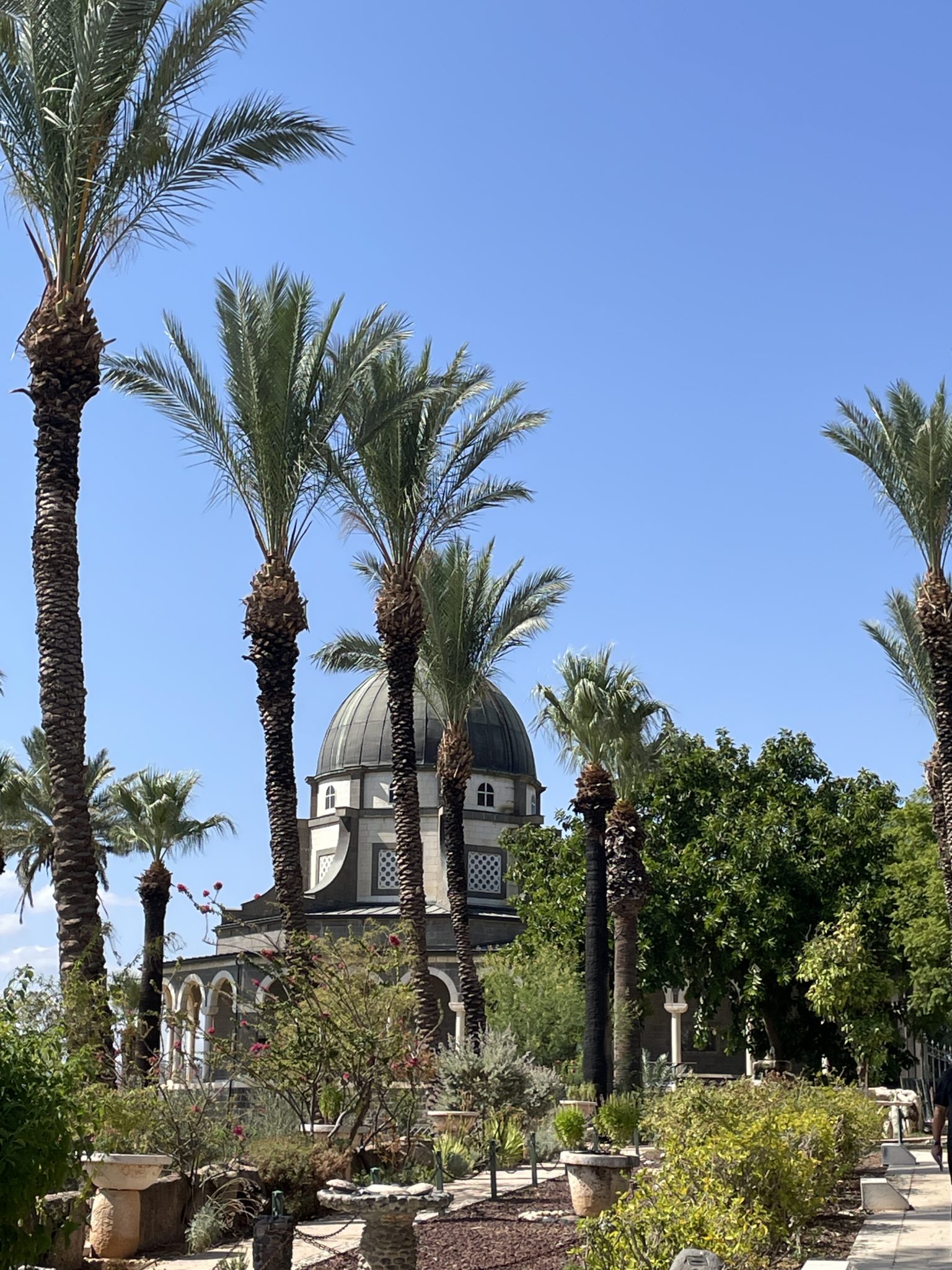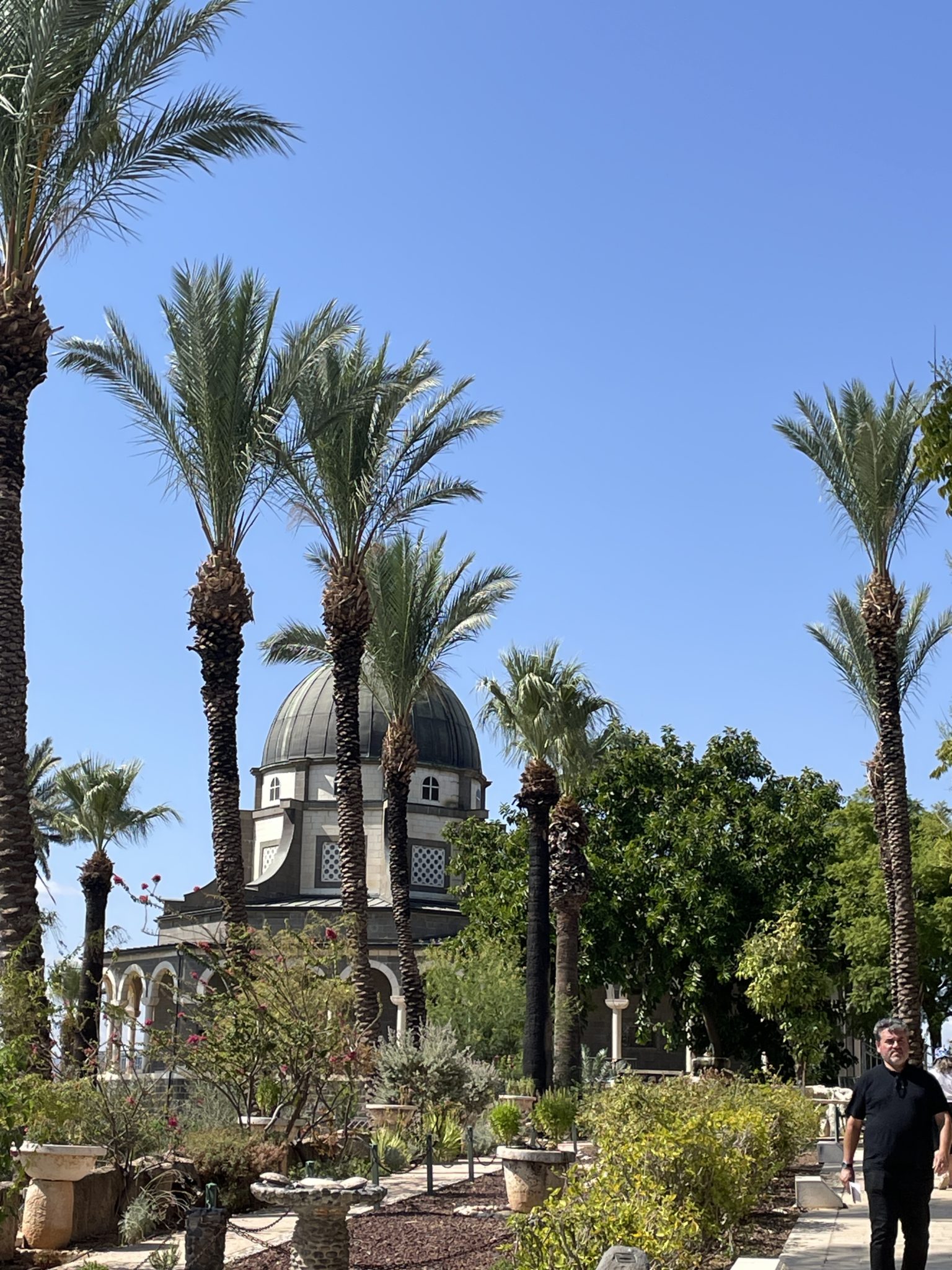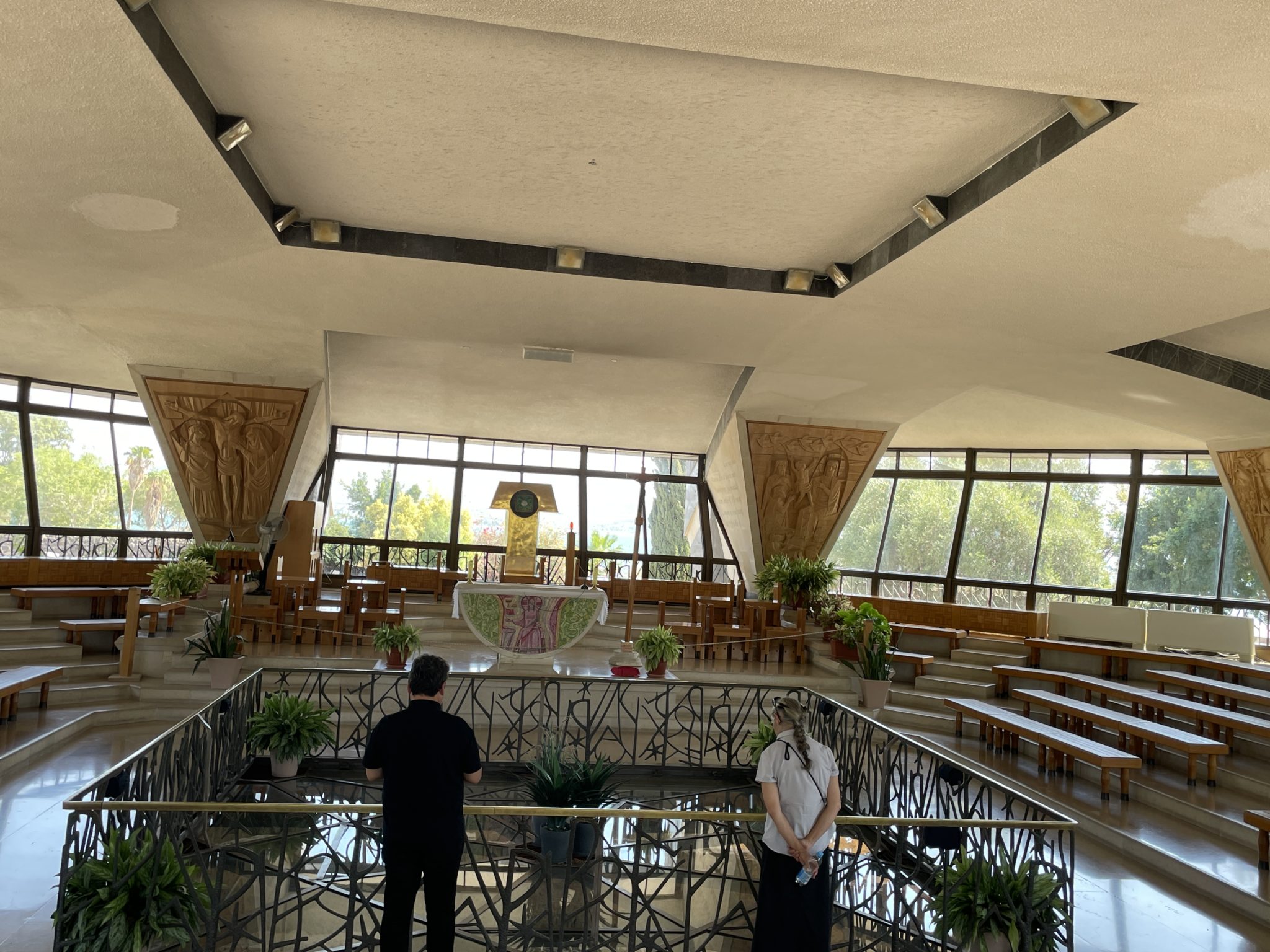Sur la colline qui surplombe le lac de Tibériade, se trouvent une église franciscaine, un couvent, une auberge et de magnifiques jardins. L’église a été construite en 1938 par l’architecte italien Antonio Barluzzi. Elle est de style néo-byzantin, en forme octogonale, suivant les 8 Béatitudes du sermon sur la montagne. La vue sur le lac est saisissante.