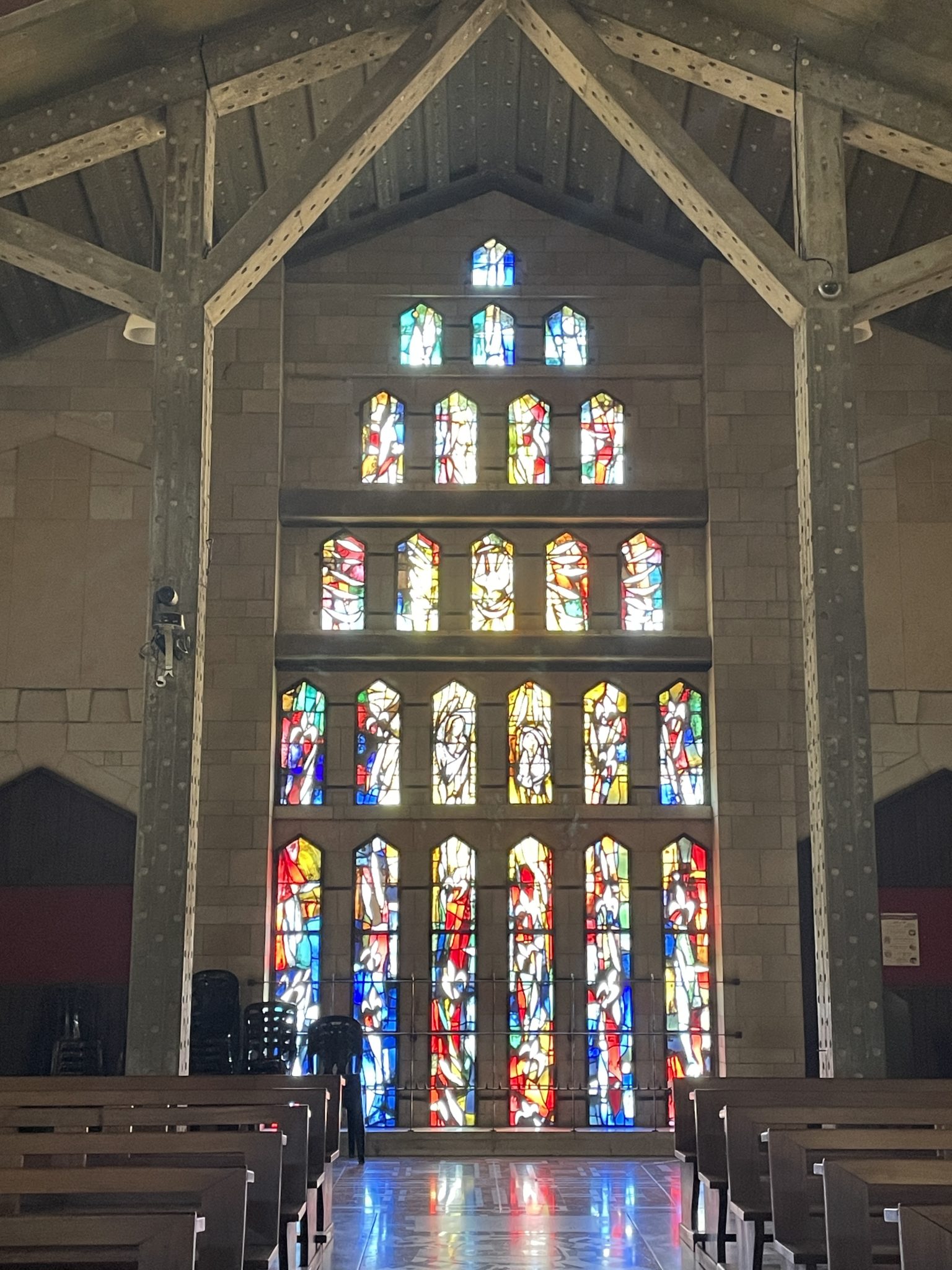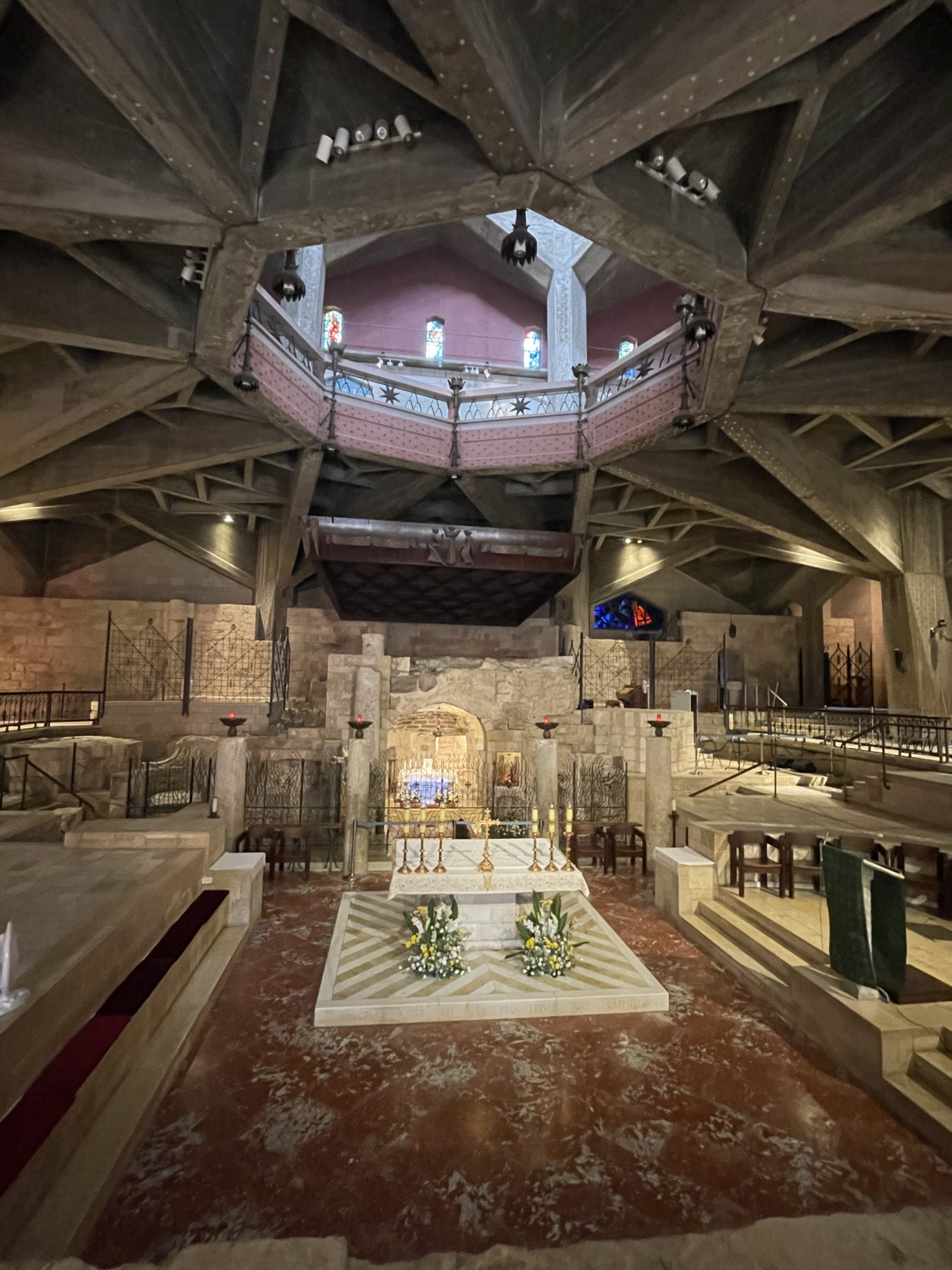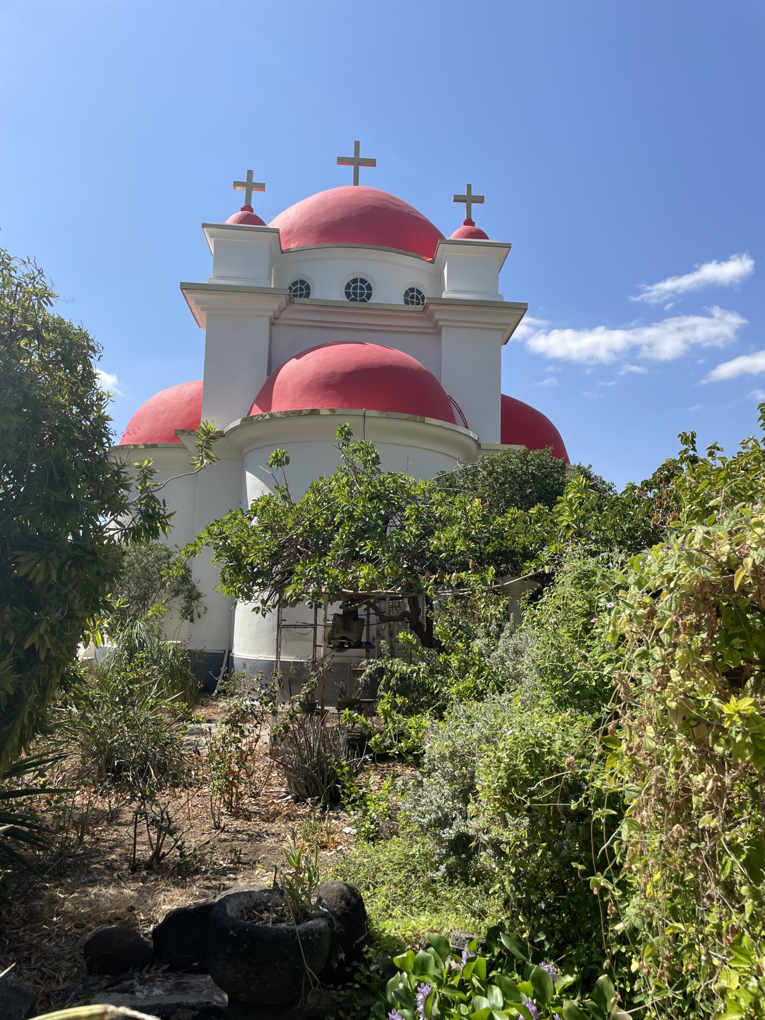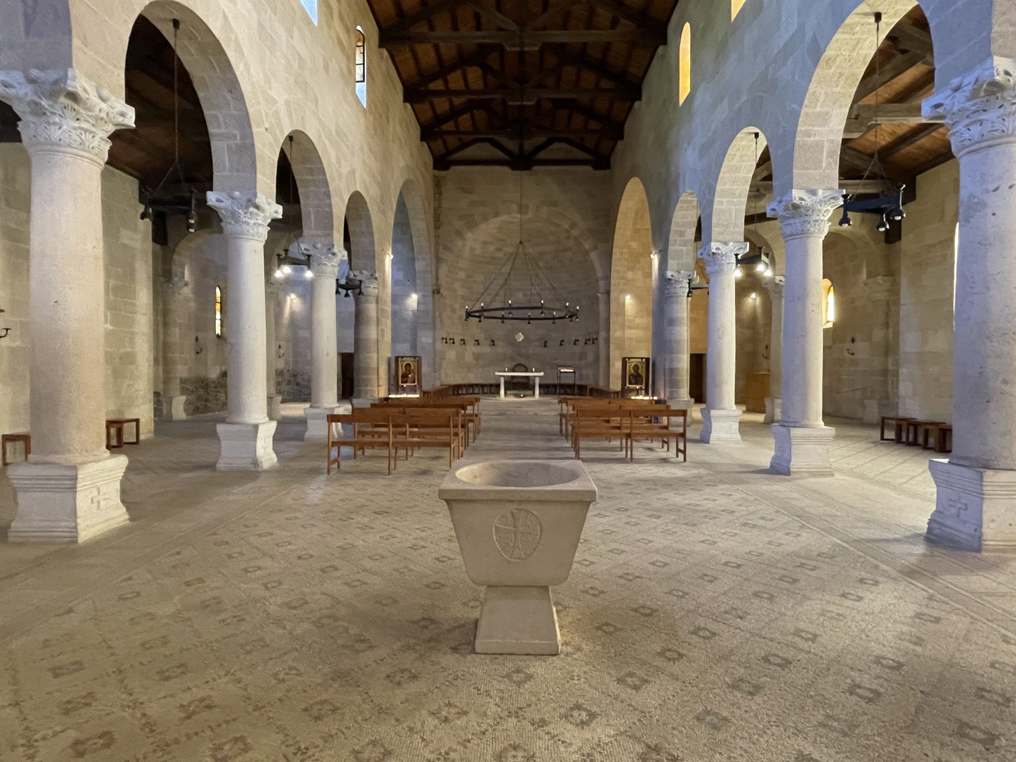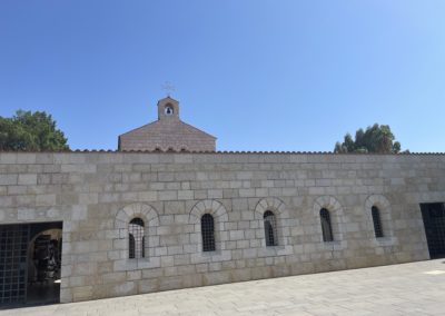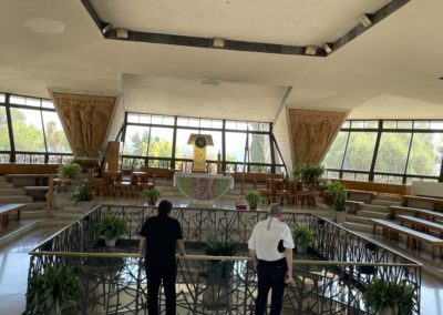 Sur la colline qui surplombe le lac de Tibériade, se trouvent une église franciscaine, un couvent, une auberge et de magnifiques jardins. L’église a été construite en 1938 par l’architecte italien Antonio Barluzzi. Elle est de style néo-byzantin, en forme octogonale, suivant les 8 Béatitudes du sermon sur la montagne. La vue sur le lac est saisissante.
